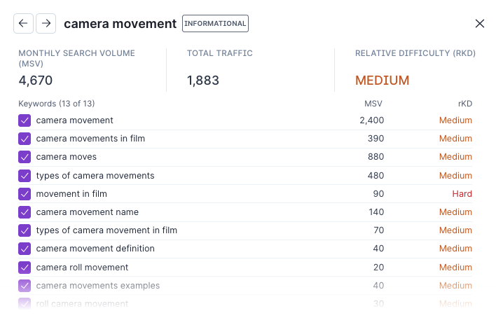 You can then use metrics like monthly expected traffic and search volume to choose which topics to write about first.