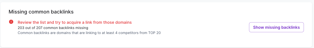 - Missing backlinks common to competitors