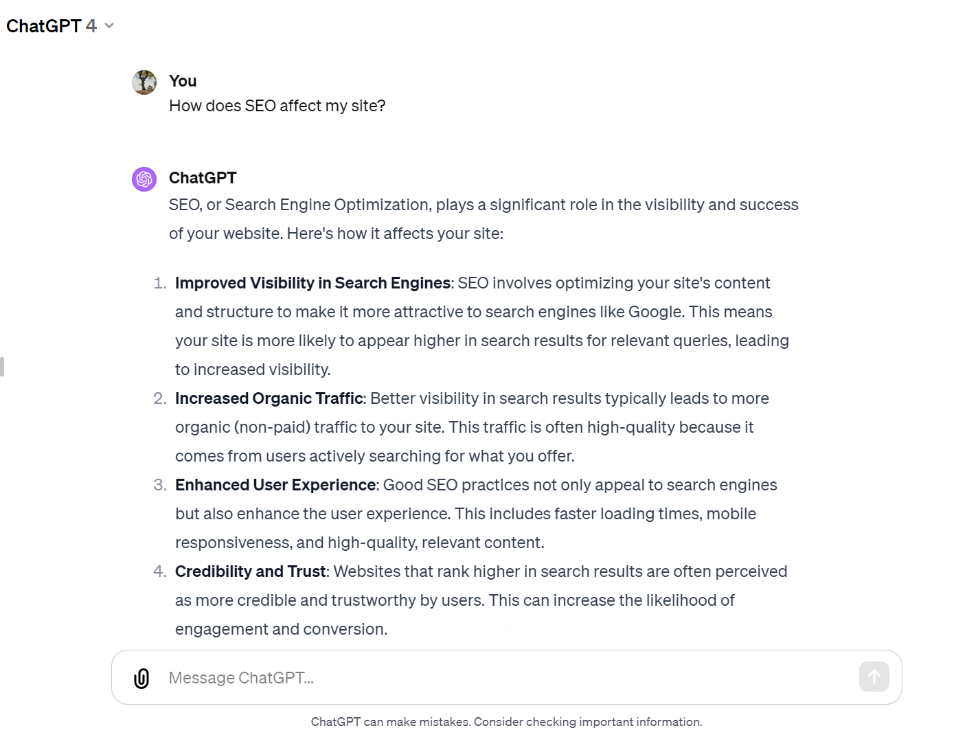 For example, if you want to enquire about the best SEO practices, a generic prompt like this will provide a similarly generic answer.