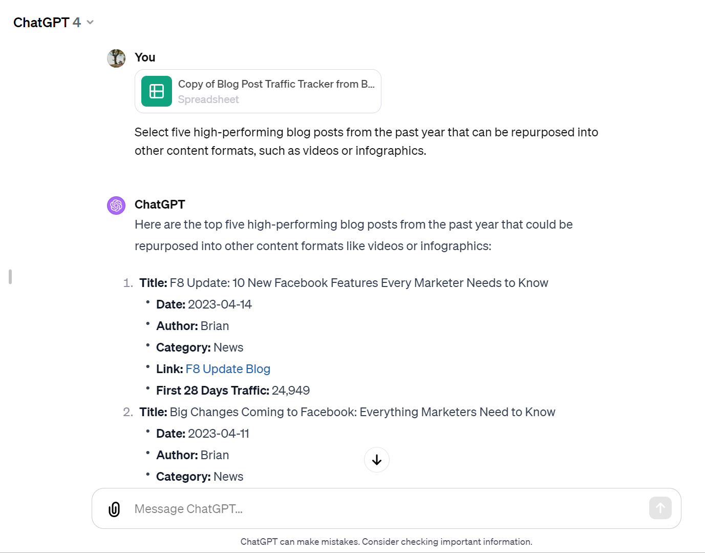 - Select five high-performing blog posts from the past year that can be repurposed into other content formats, such as videos or infographics. [Attach a spreadsheet with relevant information]