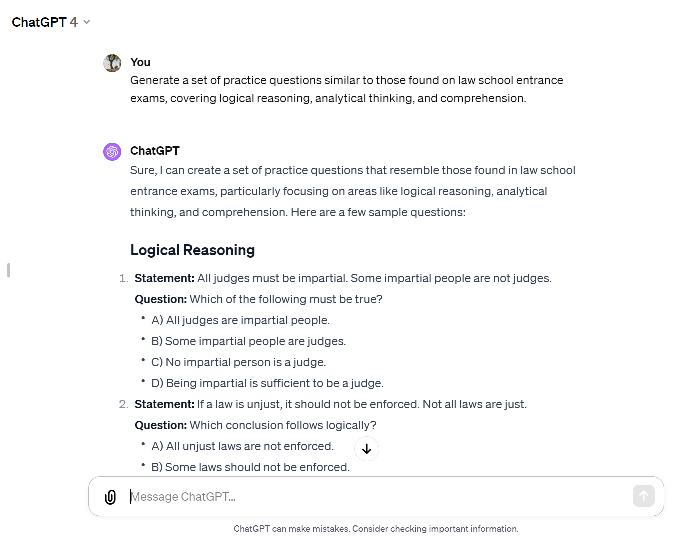 - Generate a set of practice questions similar to those found on law school entrance exams, covering logical reasoning, analytical thinking, and comprehension.