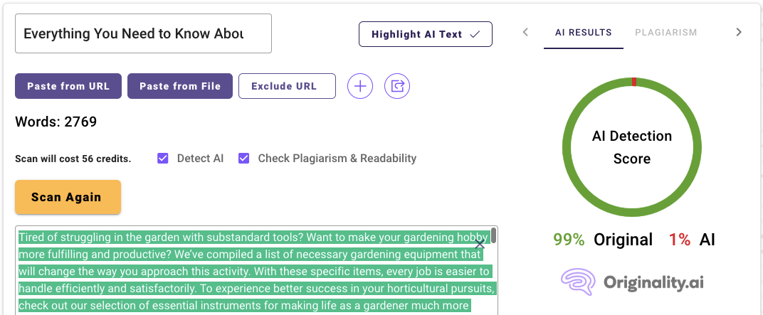 Here's an example of an article we ran through Originality's AI content detector.