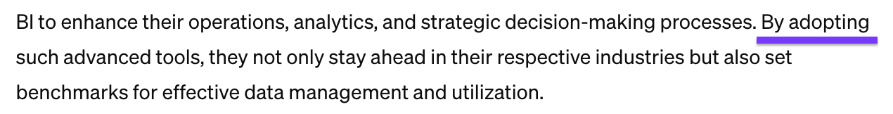 For example, AI has the tendency to use sentences that open with “By…” for their closing remarks. While they would pass a grammar check, a human would rarely phrase them quite like this.