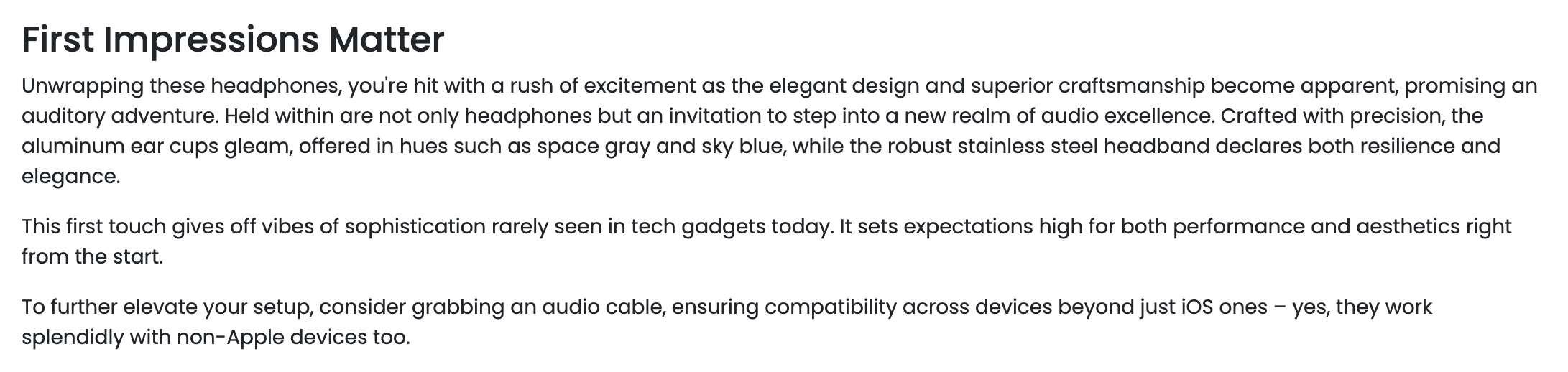 "You're hit with a rush of excitement as the elegant design and superior craftsmanship become apparent, promising an auditory adventure"