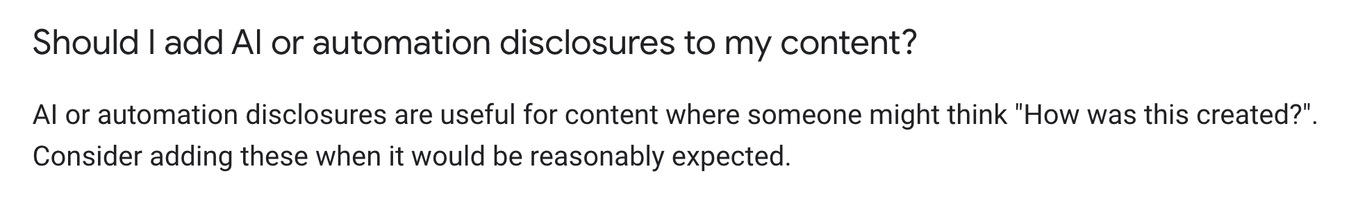 Note that Google doesn't require you to add a disclaimer for AI content except for some cases.