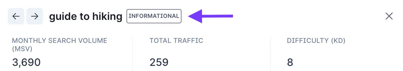 Alternatively, you can easily identify the search intent of a keyword using a keyword research tool.
