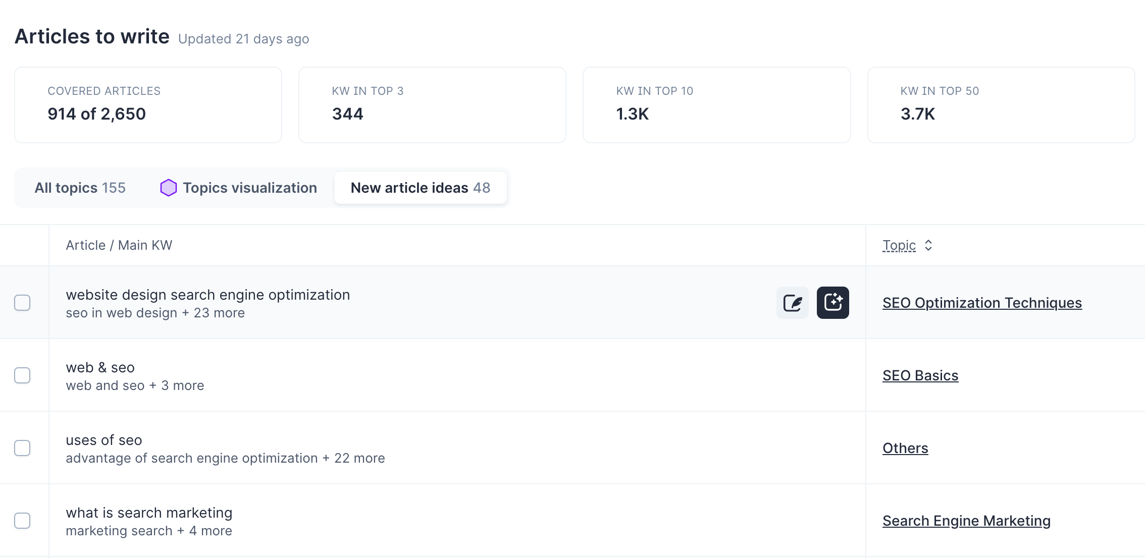 You can use your website's topical map inside Esurfer to decide which keywords are worth targeting.