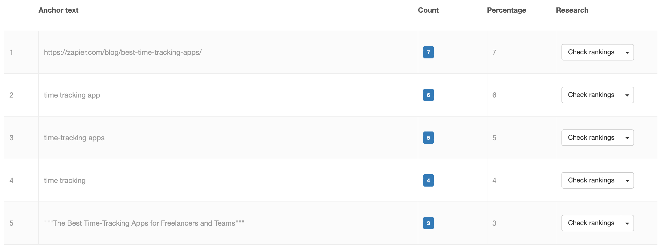 In the results, you'll see that Zapier has dozens of pages related to time tracking, which is another contributor to its high rank.