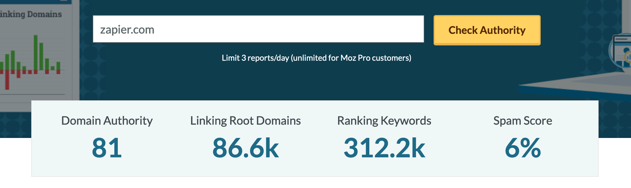 Still, it's worth assessing because websites with a high domain authority do tend to rank better on average.
