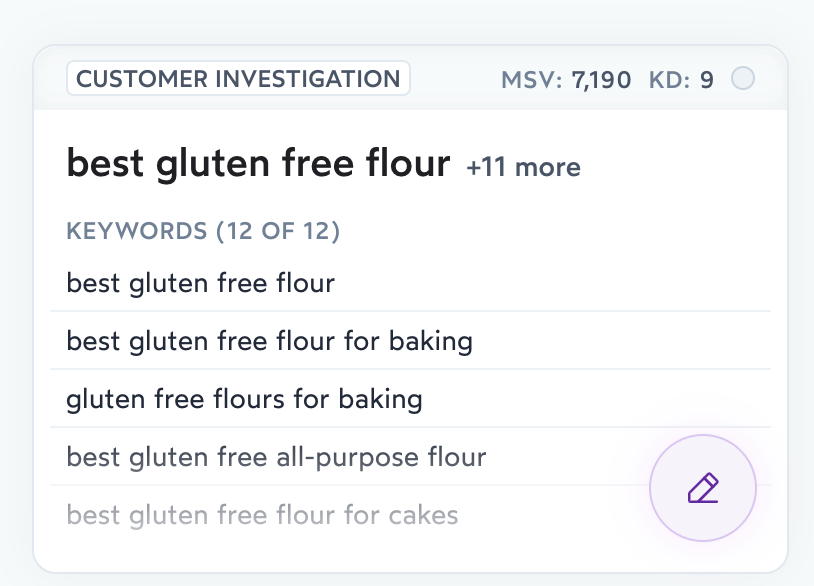 Use Surfer's Keyword Research Tool to then write your article which factors in all the keywords you selected in the keyword research.