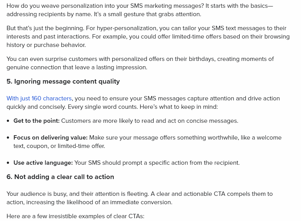 The blog also uses bullet points and emboldened texts to highlight important snippets of information further.
