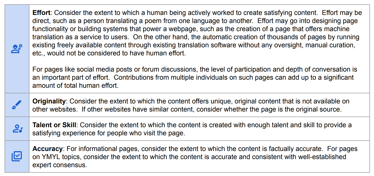 Demonstrating a high degree of effort and originality can help your content seem authoritative. Including unique or newly discovered knowledge can increase your information gain score versus other competing pages.