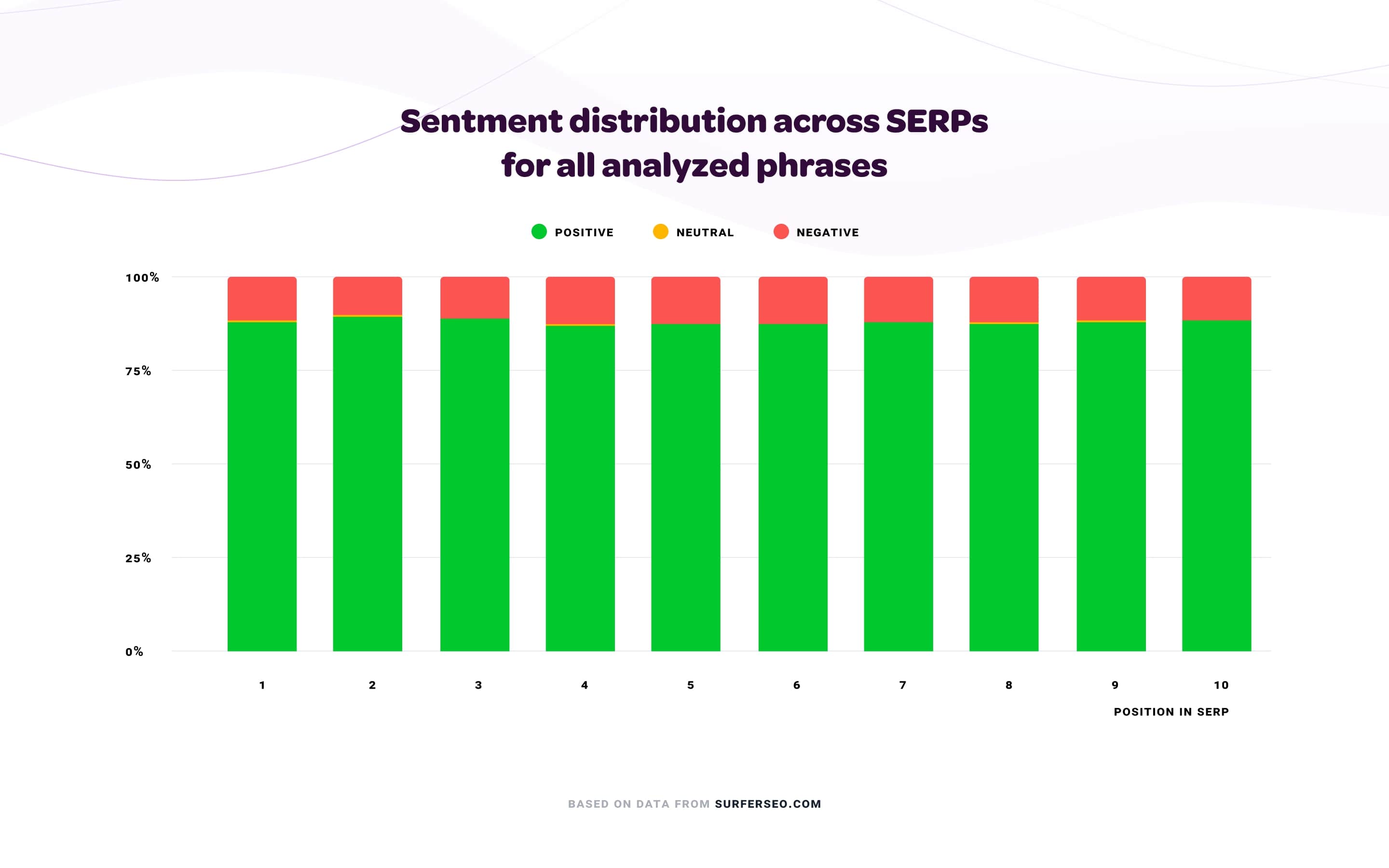 Our first task was to establish the percentage of positive, neutral, and negative sentiment in SERPs.