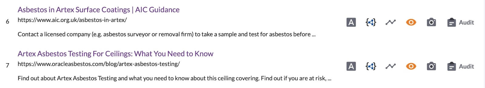 Pages ranking 6th and 7th are promoting services. They help families test for asbestos so their content is value-oriented.