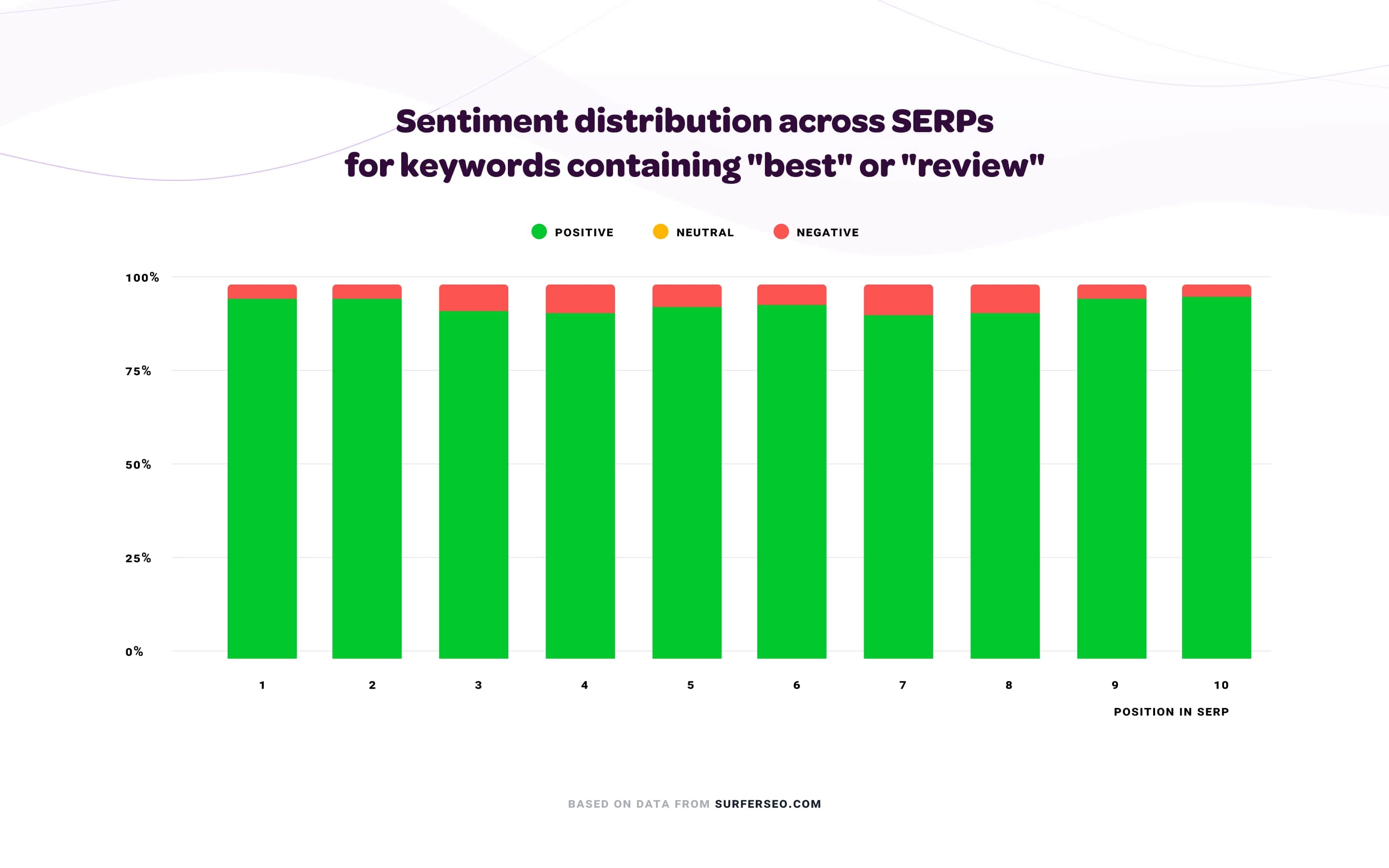 That’s why 94.15% of all pages in the top 10 have positive sentiment as they contain many superior words and phrases promoting the products they are talking about to influence the reader into making a purchase and ultimately earning them a commission.