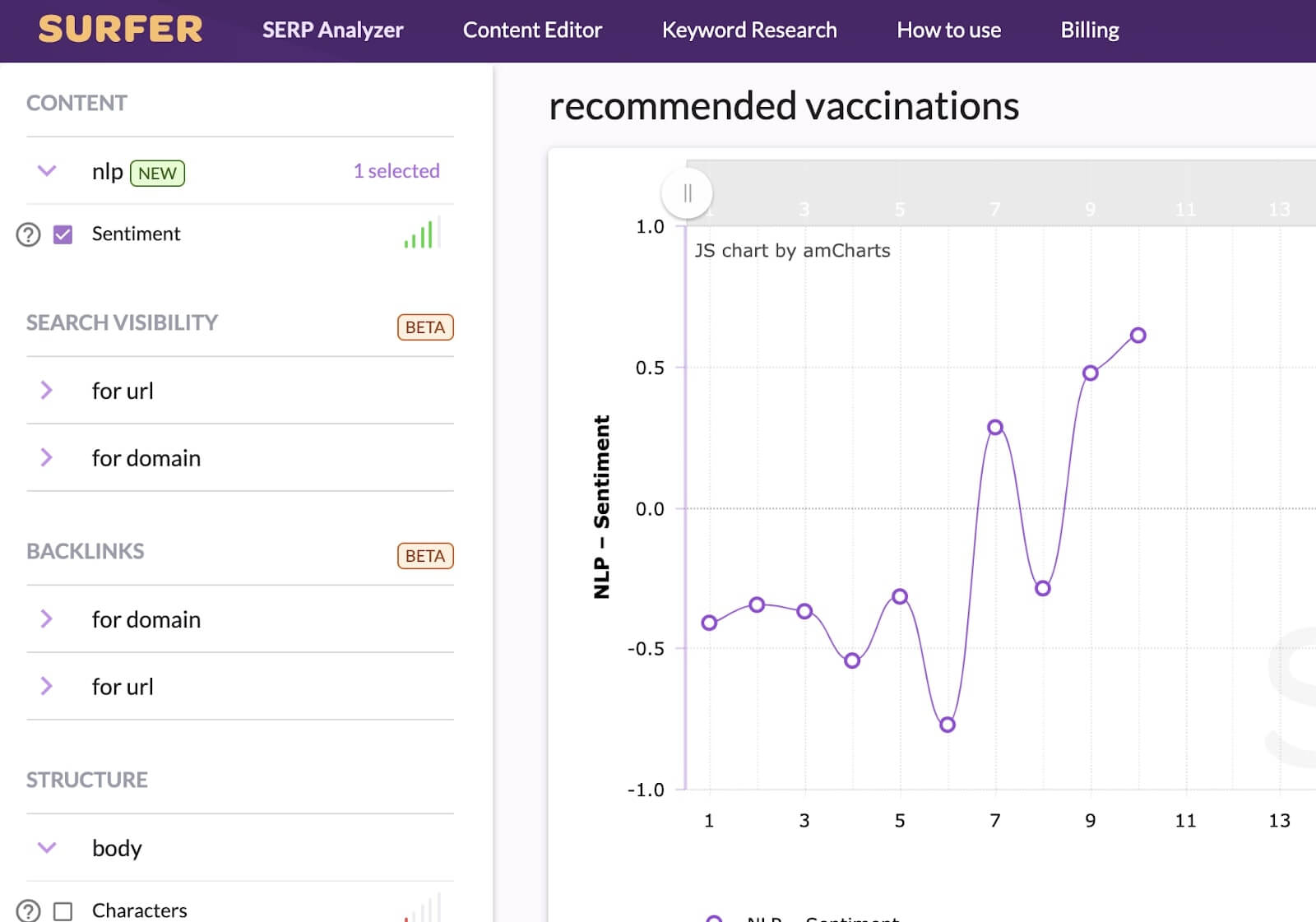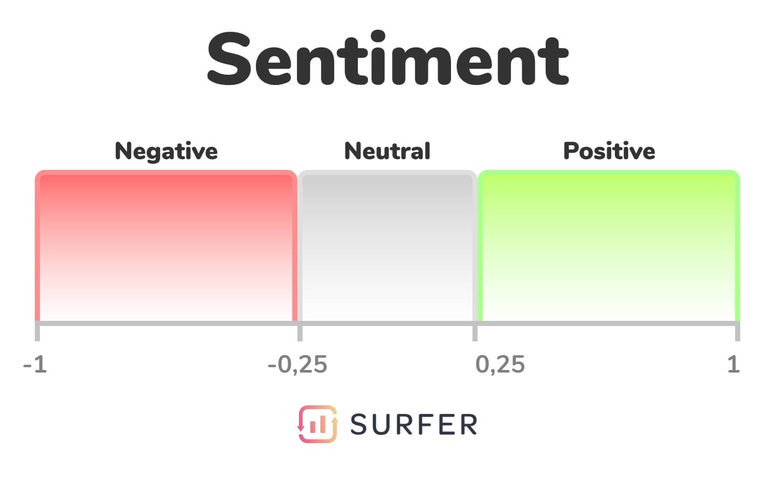 In seo text analysis, the sentiment is an interpretation of positive, neutral, and negative emotions associated with the content.