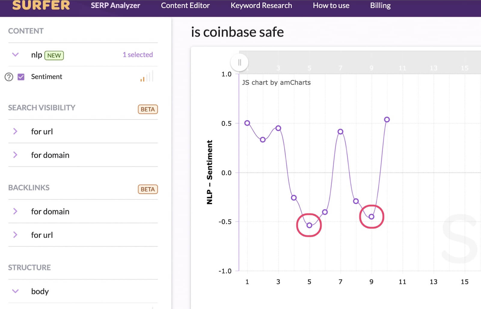 Let’s take a look at some examples of NLP Sentiment Analysis in Esurfer.