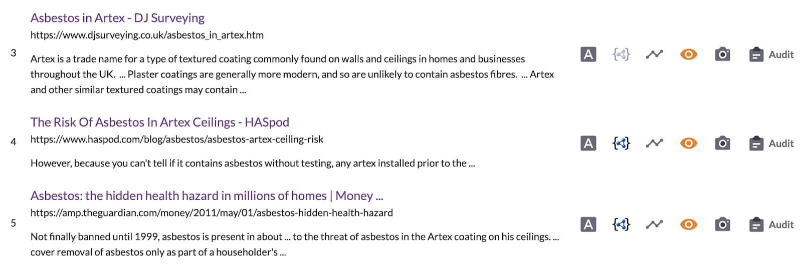 Most of the pages are highly opinionated, calling asbestos a “health hazard in million homes”. They discuss the risks of asbestos and how they influence our well-being. Just look at pages ranking three, four, and five: