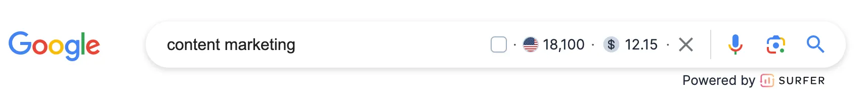 When you perform a search, it shows the monthly search volume and cost-per-click (CPC) for your targeted keyword directly into the search bar.