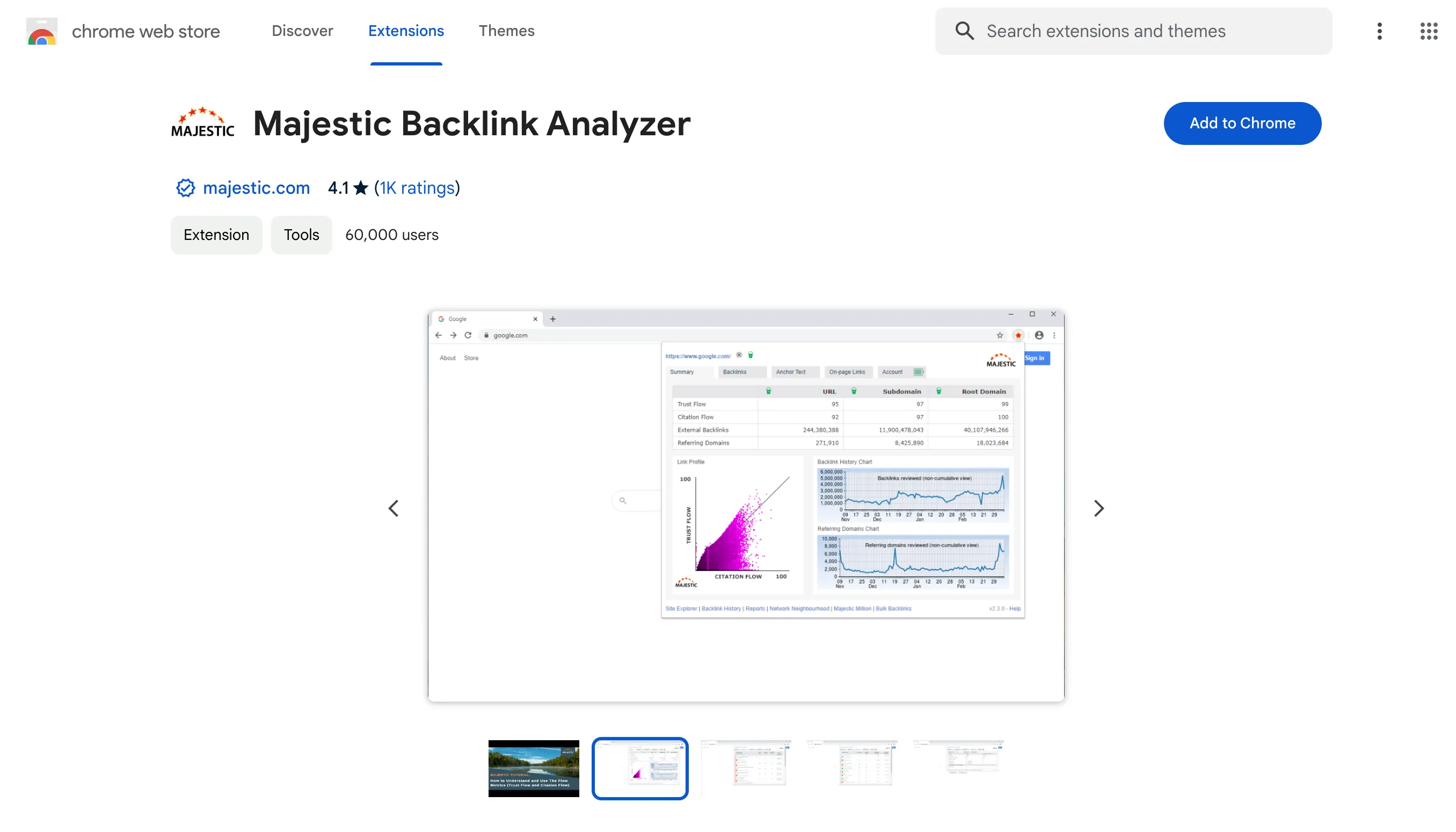 Majestic Backlink Analyzer is a freemium SEO Chrome extension that gives you detailed insight into a page's backlink profile. It's useful for determining which websites link to your competitors so that you can acquire those backlinks as well.
