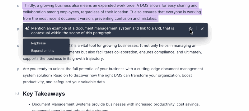 For example, here's a prompt for an article about document management systems.