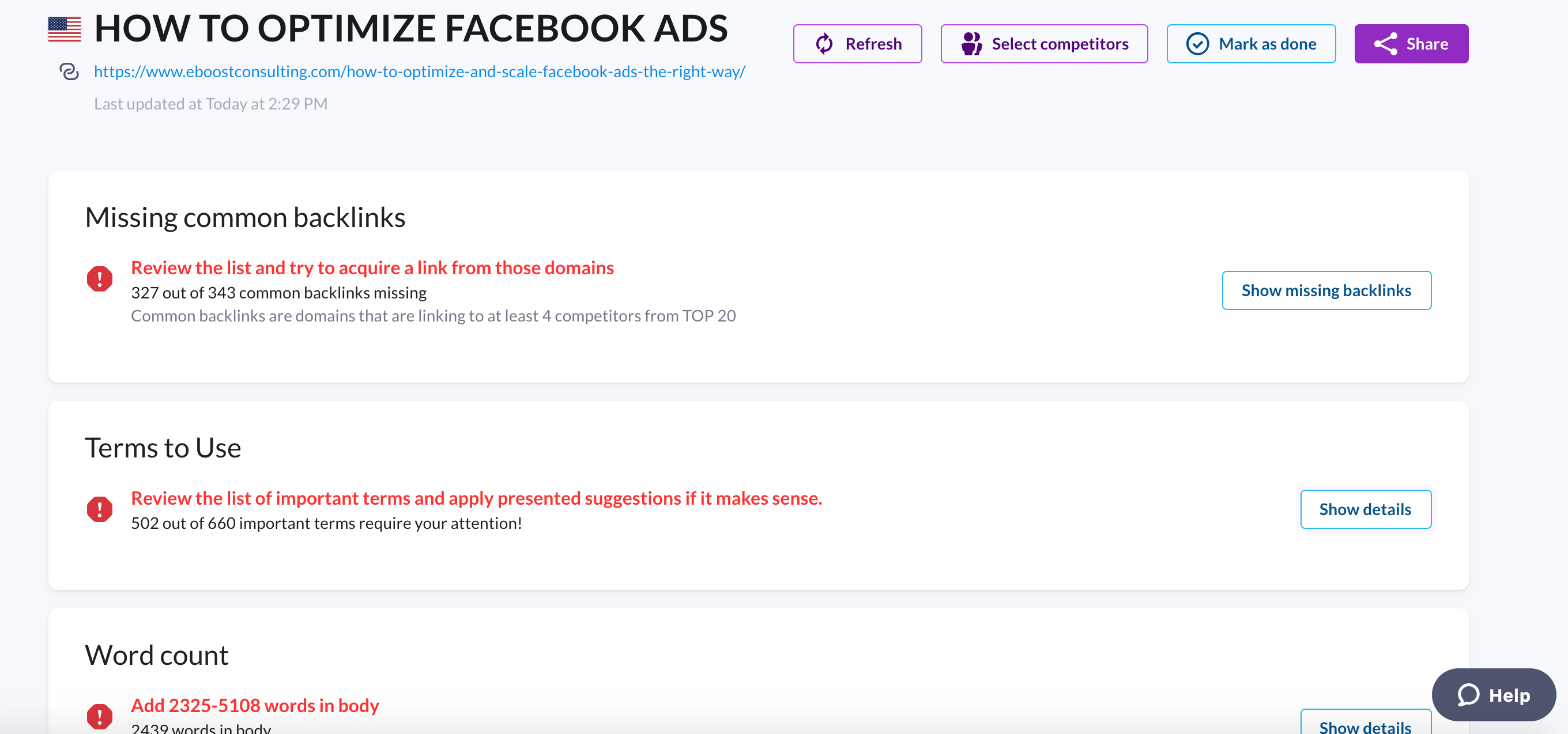 For this audited page, there are 188 terms that require attention. It’s challenging to look into every single one of them, but the effort is worth it.