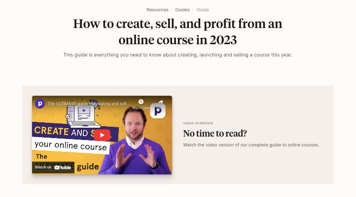 - Hub page: How to create, sell, and profit from an online course in 2023. (Note that the title can be updated to reflect each year)