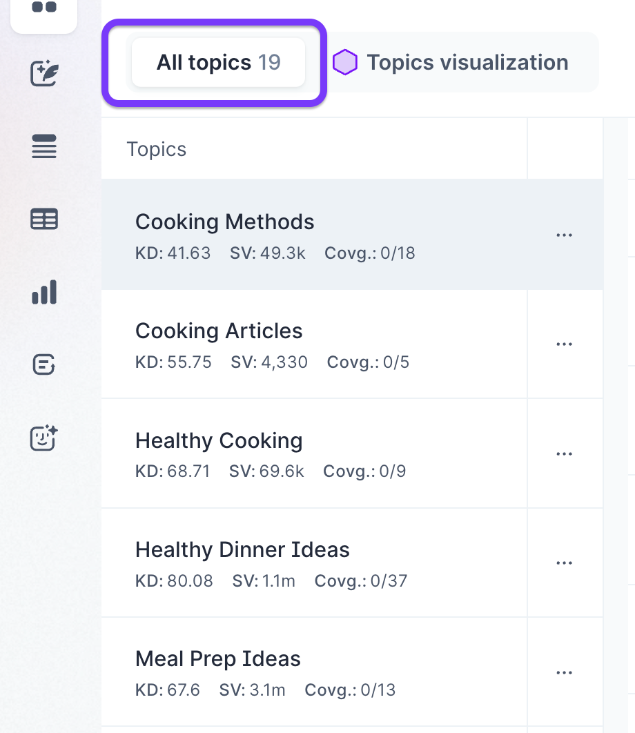 If you are attempting to build topical authority for a cooking site, you’ll want to have content addressing everything from regional to grocery shopping, cooking tips to kitchen organization.